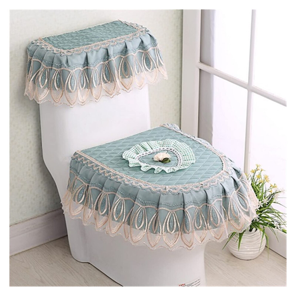 Toilet Seat Cover Set, 3Piece Velvet Lace, Gold Color, UShaped Cushions for Bathroom
