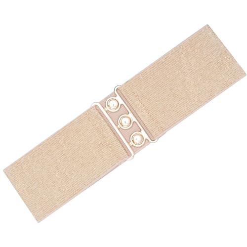 JASGOOD Women Wide Elastic Belt with Gold Buckle for Dress Stretchy Vintage Waist Gold Belt Fit Waist 26"-31"