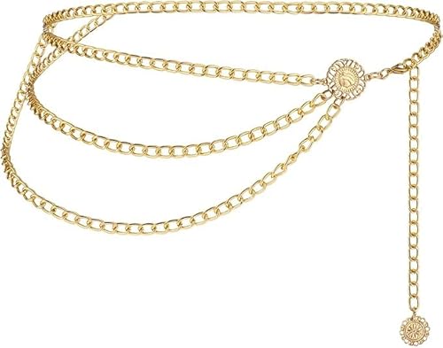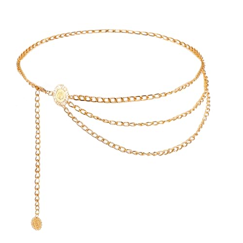 Multilayer Metal Waist Chain Belt for Women, Adjustable Gold Belts for Woman Body Belly Chain for Women Fashion Dress Jeans Trousers Western Accessories for Female Gift for Friends Lover