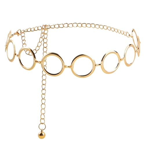 Molain Womens O-Ring Chain Belt Waist Chain Belts, Adjustable Metal Chain Belt Waist Body Clothing Accessories for Women Girls Suitable for Dress Jeans (Gold)