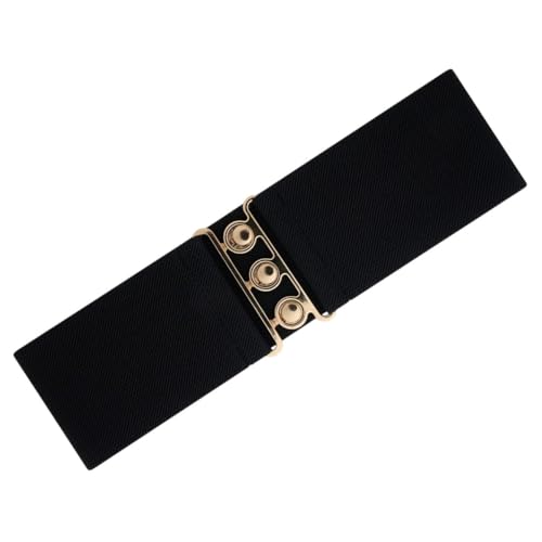 Ro Rox Retro Vintage Elastic Belt | Women's Accessories | 50s Nurse Stretchy Belt With Silver Buckle & Clasp | Waist Belts for Dress | Wide Elasticated Design for Women, Black & Gold, M
