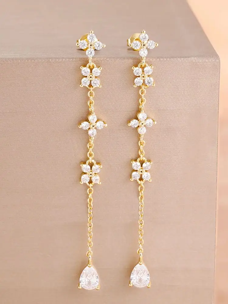 (gold) Exquisite Drop Ear Line Long Hanging Earrings For Women Cubic Zirconia Tear Drop Piercing Earing Accessories Jewelry