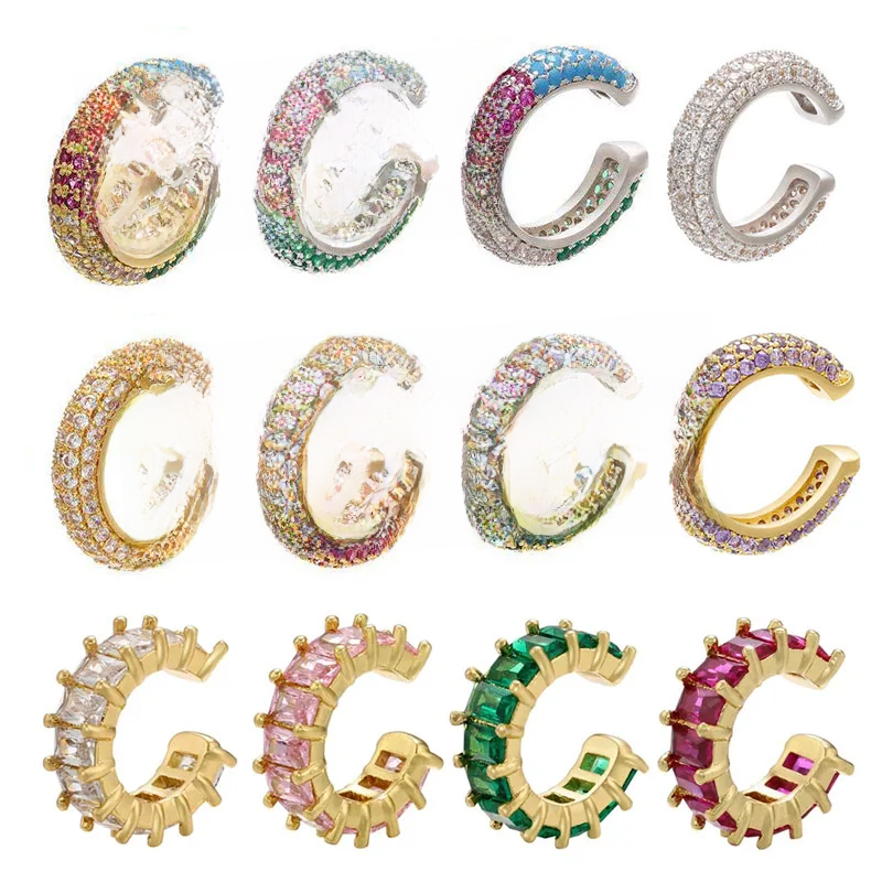 1 Piece Ear Clip on Earring Cuff Rainbow CZ Gold Silver Color Earing Jewelry Aretes Non Pierced Blue Black Clear Clipping