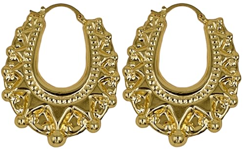 Vonchic Gold Silver Chunky Hoop Earrings for Women, Victorian Crown Inspired Gypsy Style Oval & Round Earrings, Womens Hoop Earrings, Trendy Hoops Earring Jewelry Gift (50mm Extra Large)
