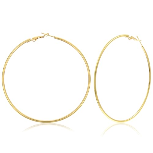 Large Hoop Earrings for Women 70mm Stainless Steel Plated Thin Hoop Earrings Anti-allergic Oversize Hoops Earring Circle Endless Hoops Earring for Women Girls (Gold)