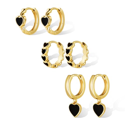 ALEXCRAFT Gold Earrings For Women 925 Post Set Gold hoops Earrings for Women Black Heart Earrings for Woman Small Huggies Earring