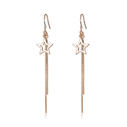 Loutade Silver Drop Earrings for Women, 925 Sterling Silver Dangle Drop Earrings, Hypoallergenic Long Dangly Rose Gold Star Earrings for Girls, Hook Hanging Tassel Silver Dangly Earrings for Birthday