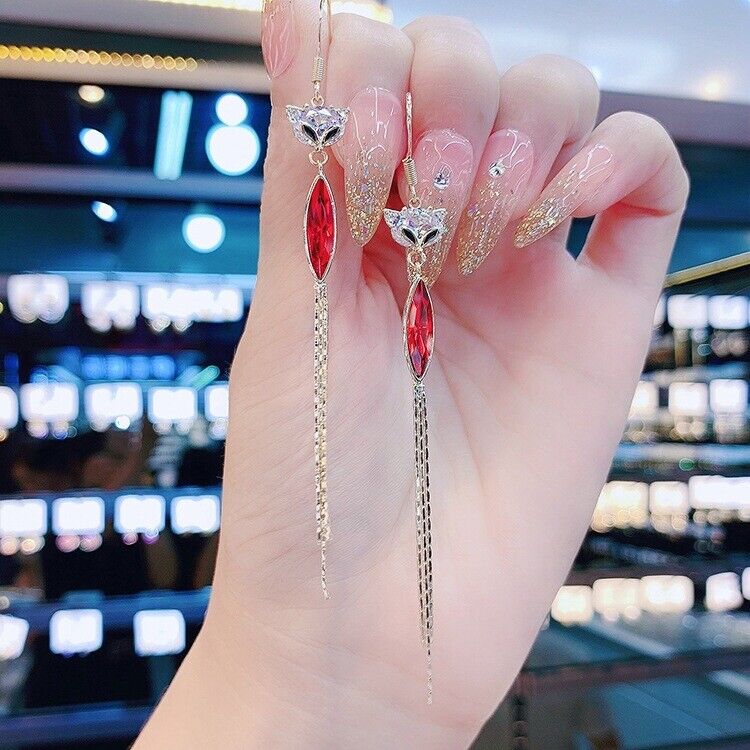 925 Sterling Silver Cute Fox Drop Dangle Gold Stud Earrings Women Girls Gift