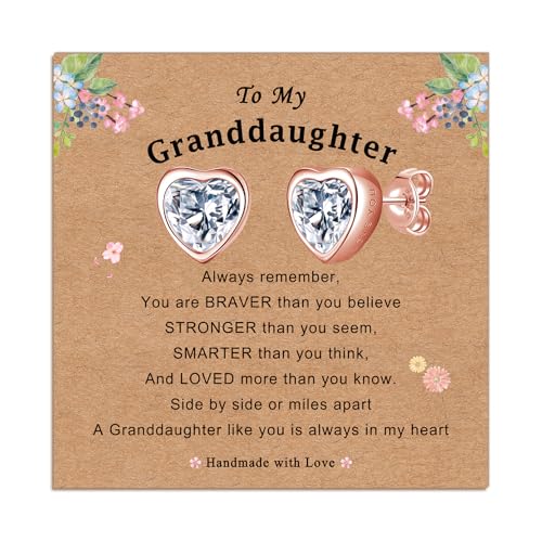 ilasif Rose Gold Stud Earrings for Girls, Hypoallergenic Tiny Rose gold Plated Heart Cubic Zirconia Earrings for Kids Teen, Daughter Granddaughter Gifts for Birthday Christmas (To My Granddaughter)