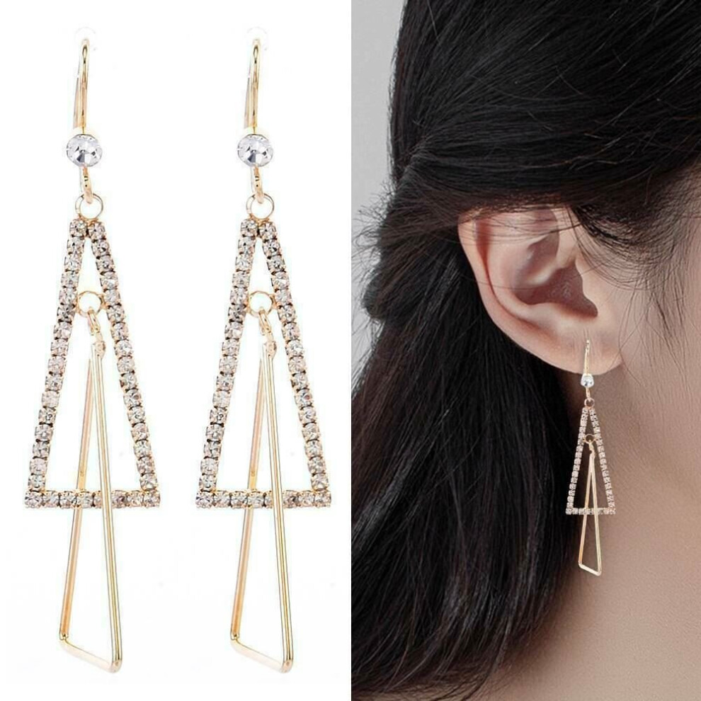 (Gold) Triangle Earrings for Women Girls Silver Gold Hoop Zircon Jewellery Party Gift