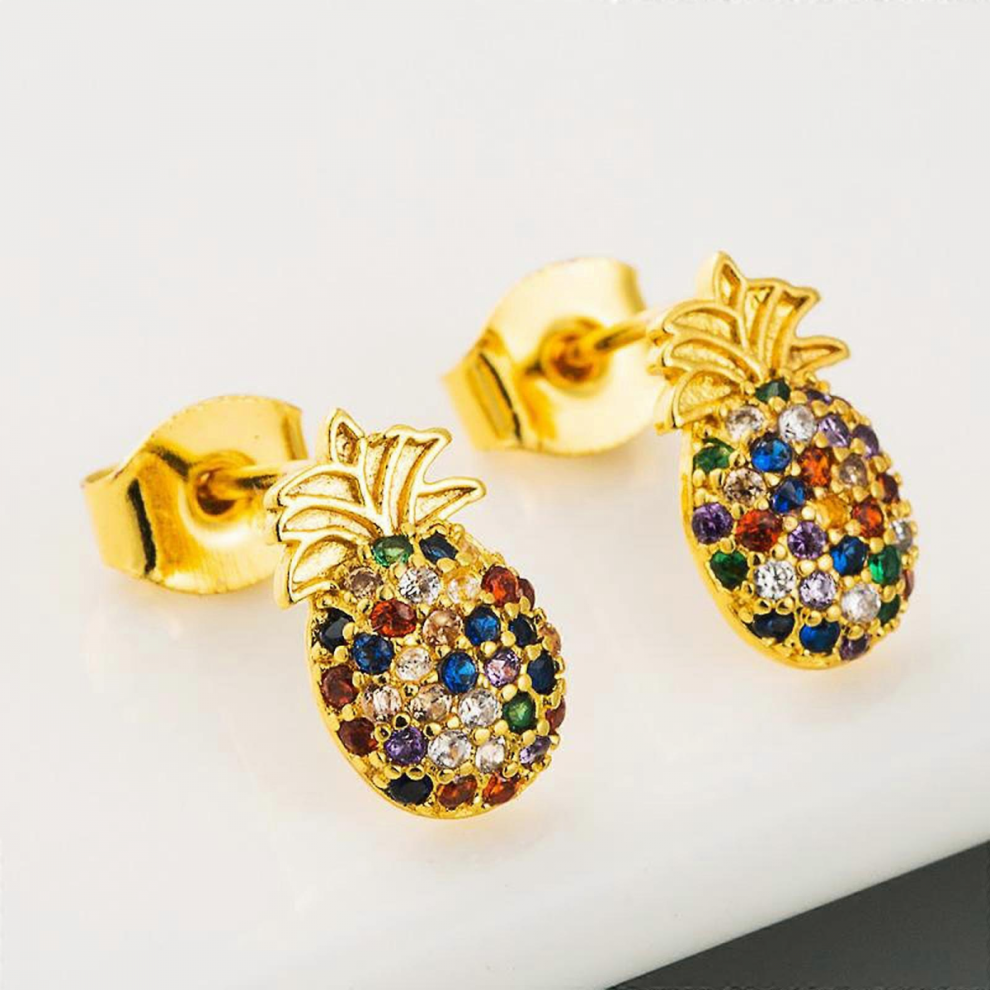 Fruit Pineapple Earrings for Women, 18K Gold Drop Earrings Girls Hanging Earrings, Creative Earrings for Women, Studs Earrings for Girls