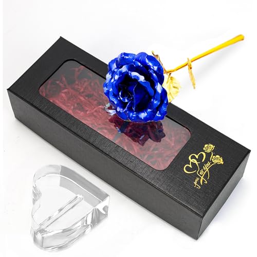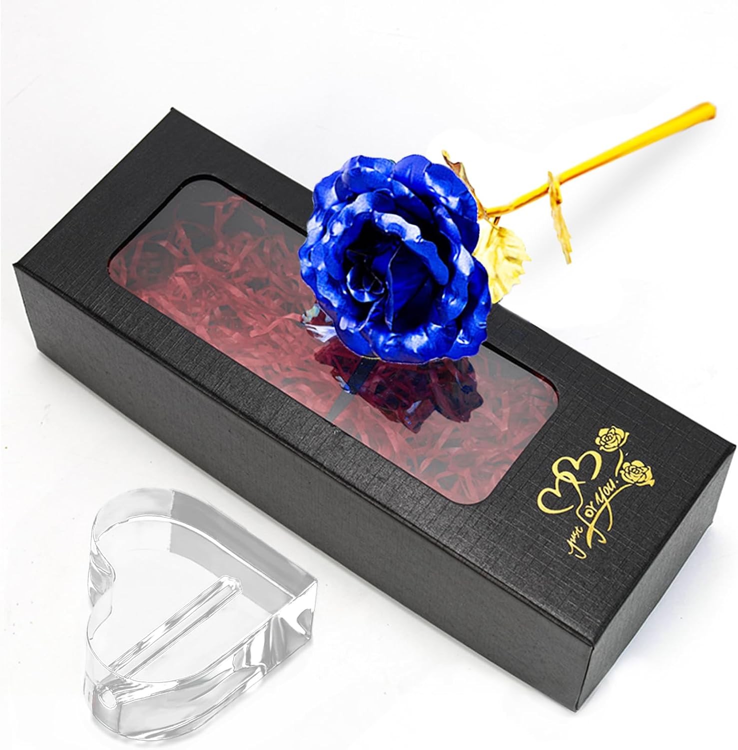 TINYOUTH 24k Gold Forever Rose, 24K Blue Rose Gold Plated Rose Flower with Stan