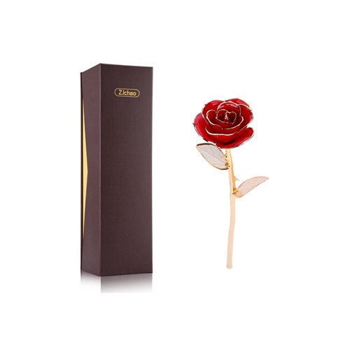 TINYOUTH 24k Gold Forever Rose, 24K Red Rose Gold Plated Rose Flower with Stand