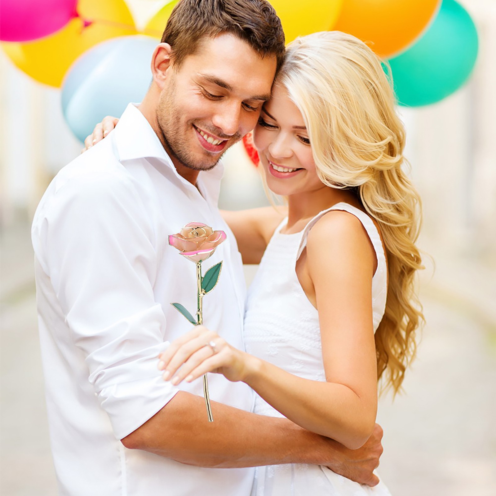 .›Pink White 24k Gift Gold Rose Forever Long Stem Dipped Rose Handcrafted Gift