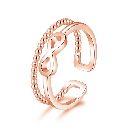 Cangall Adjustable Silver Rings for Women, 925 Sterling Silver Double Lines Band Open Rings, Simple Adjustable Infinity Thumb Rings Rose Gold, Forever Love Silver Promise Finger Rings Rose Gold