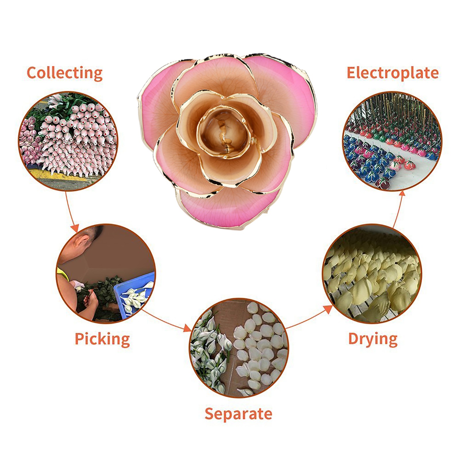 Pink White 24K Gift Gold Rose Forever Long Stem Diving Rose Handmade