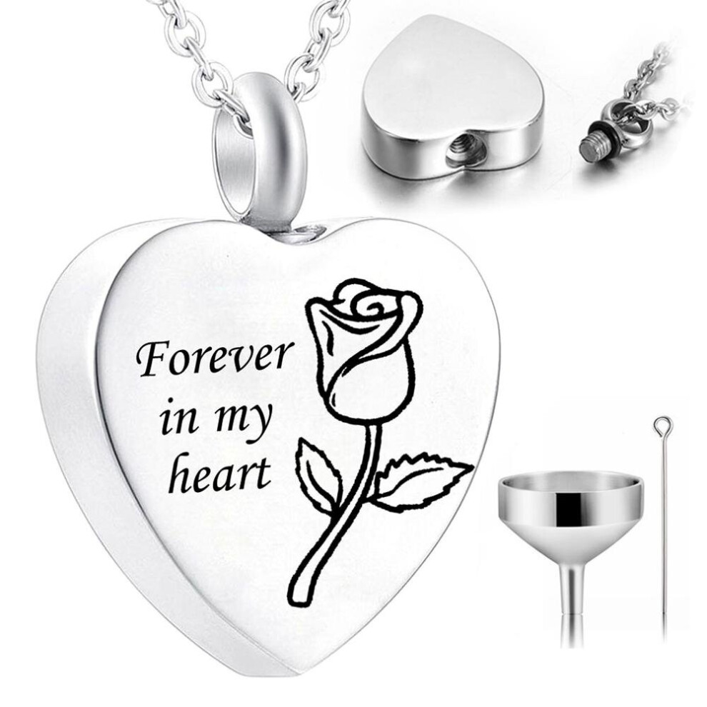 (Light Yellow Gold Color, White) Forever in My Heart Cremation Urn Necklace for Ashes for Women Urn Jewelry Memorial Pendant with Fill Kit and Gift Ve