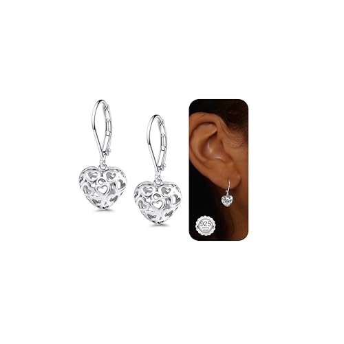 Milacolato Gold/Silver Heart Earrings S925 Sterling Silver Hollow Hearts Shaped Leverback Dangle Drop Earring for Women Girls