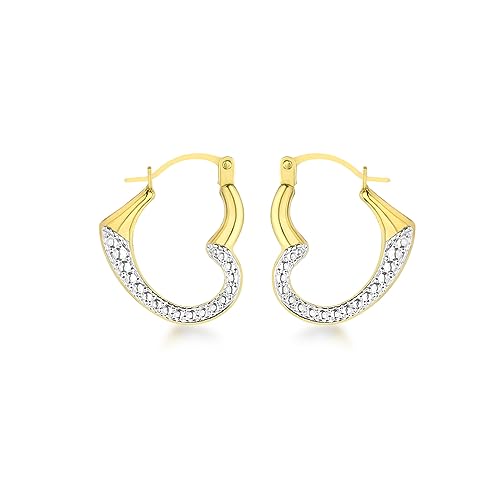 Jewelco London Ladies 9ct Yellow and White Gold Sparkling Heart Creole Earrings - JER732