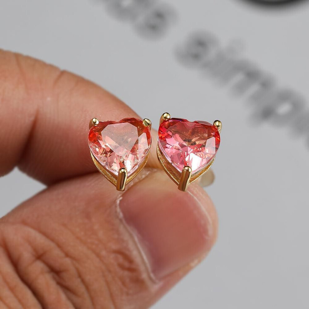 (gold,rose red) Cute Small Love Heart Cut Tourmaline Stud Earrings For Women Luxury Rose Gold Color Heart Earrings Wedding Party Jewelry