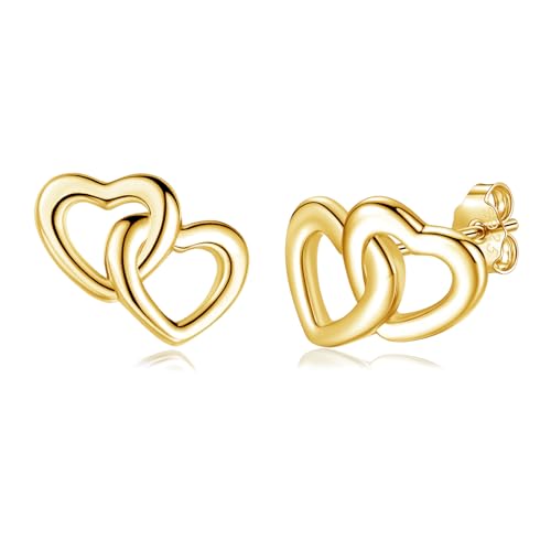 Loutade Silver Heart Earrings for Women, 925 Sterling Silver Stud Earrings, Hypoallergenic Cartilage Sleeper Simple Entwined CZ Flat Gold Double Open Heart Earrings