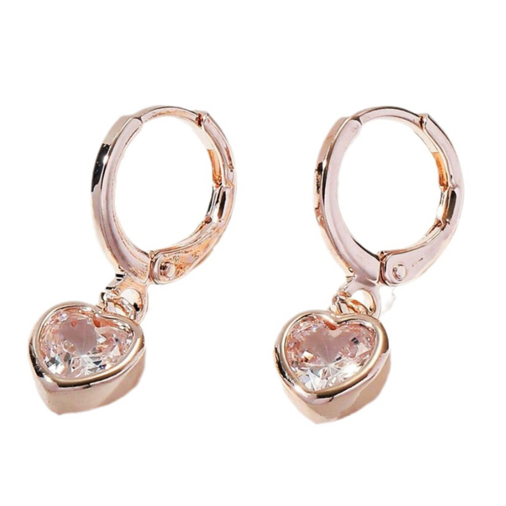 Rose Gold Heart Huggie Earrings, Copper Rose Gold Plated Heart Shaped Zircon Dangle Jewelry, 2.0*0.6cm Cute Elegant Cartilage Hoops For Women Teens