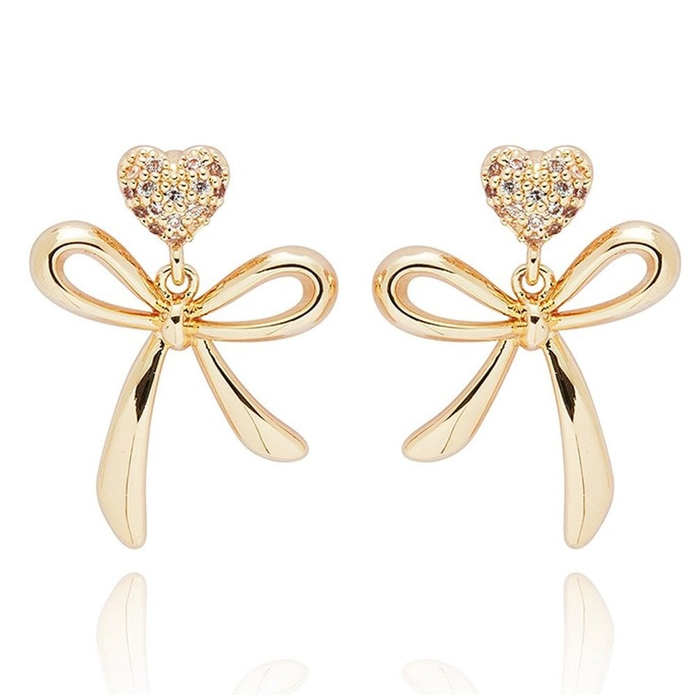 Equilibrium Eternal Bow Glam Heart Gold Plated Earrings 359240