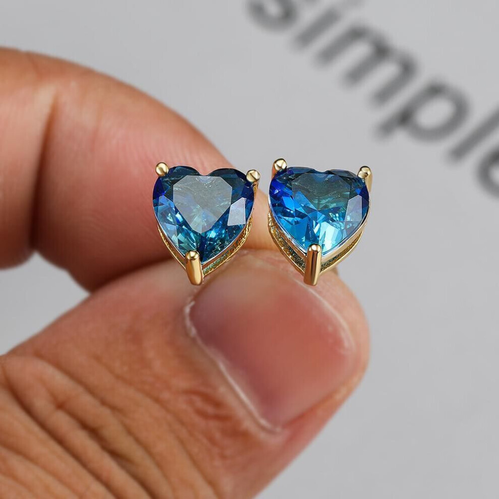 (gold,aqua blue) Cute Small Love Heart Cut Tourmaline Stud Earrings For Women Luxury Rose Gold Color Heart Earrings Wedding Party Jewelry