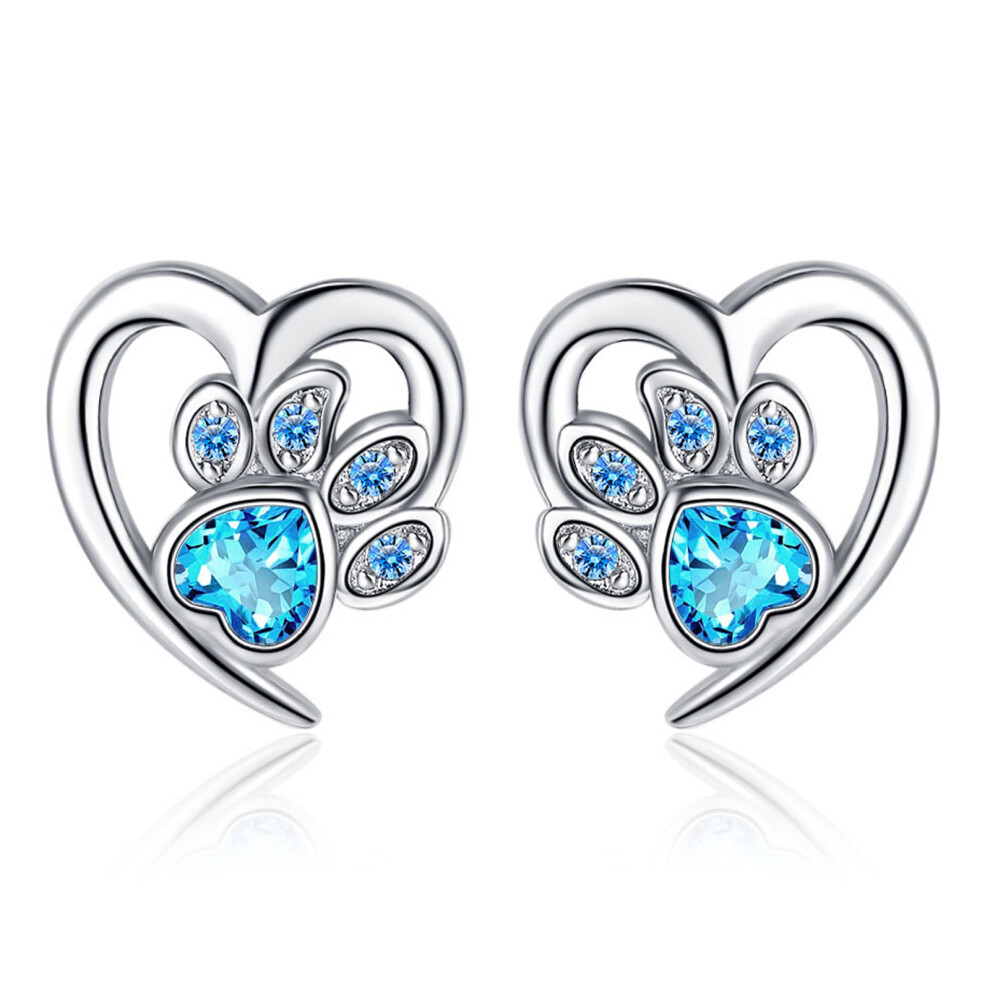 Women's Earrings, Heart Earrings, Cat's Paw Earrings, White Gold Heart Earrings, Blue Heart, Jewelry Gifts, Printed Earrings, Sweet and Cute Earrings,