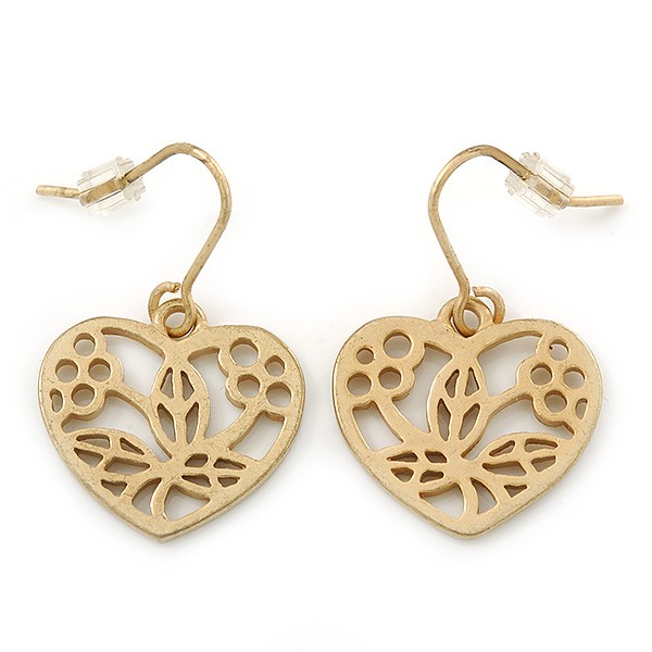 Matt Gold Tone Heart Drop Earrings - 25mm Length