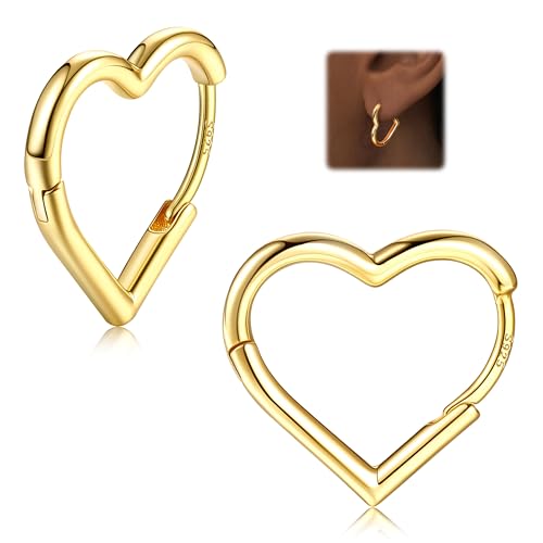 LOLIAS Gold Heart Hoop Earrings for Women Girls 14K Gold Earrings 925 Sterling Silver Cute Small Heart Hoops Drop Love Earring Lightweight Sleeper Earrings Gold Earrings Women 16MM
