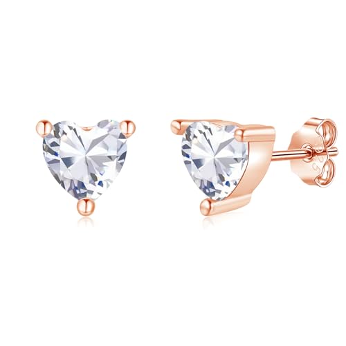 Loutade 925 Sterling Silver Stud Earrings for Women, Hypoallergenic 6mm Tiny Rose Gold Heart Stud Earrings White Cubic Zircon, Dainty Small CZ Heart Cartilage Sleeper Stacks Ear Studs Jewelry Gifts