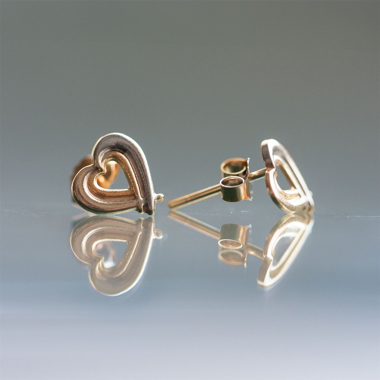 9ct Gold Heart Stud Earrings - UK Made - Solid 9k Gold