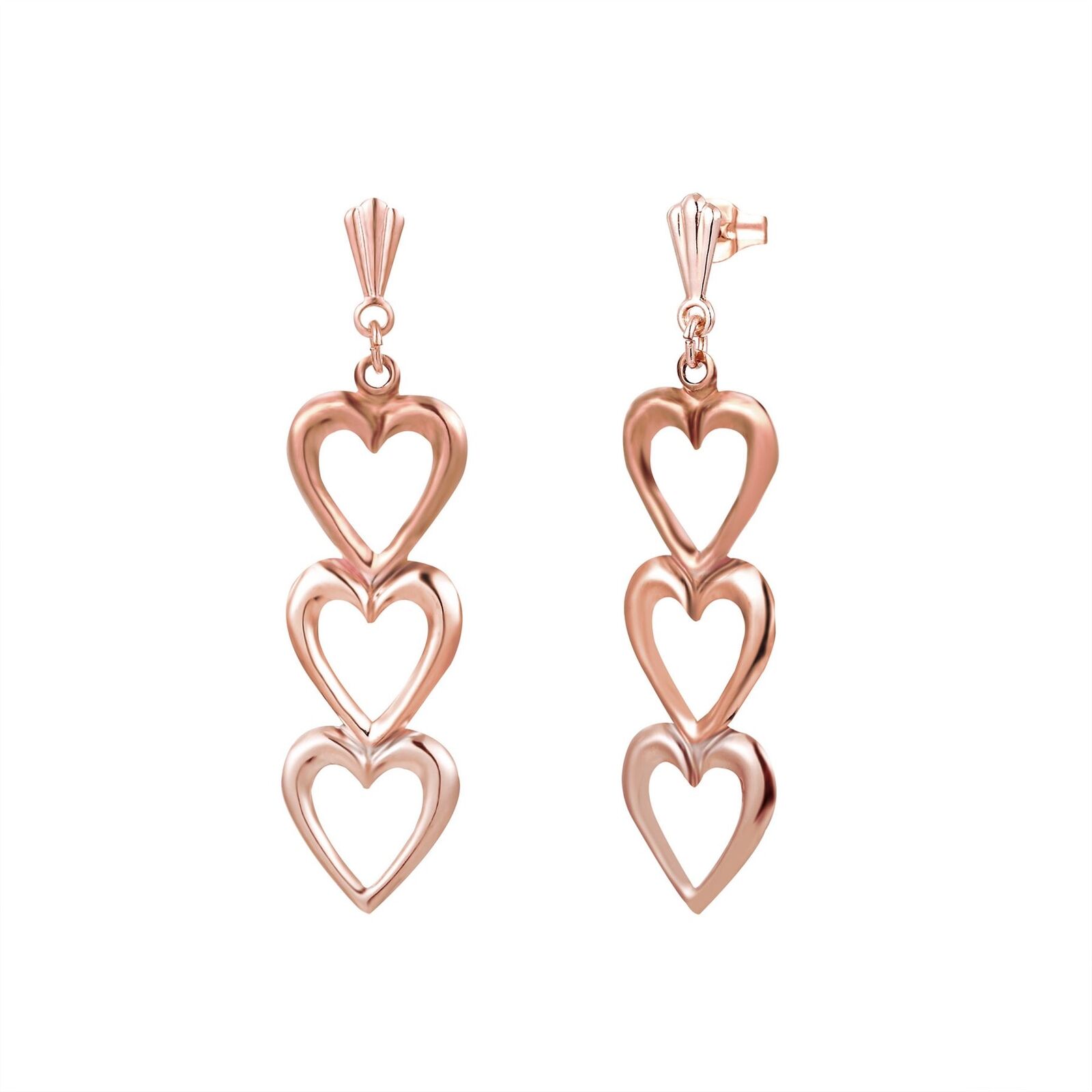 9ct Rose Gold Triple Heart Drop Earrings