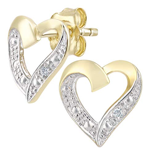 Naava Women's 9 ct Yellow Gold Diamond Heart Earrings