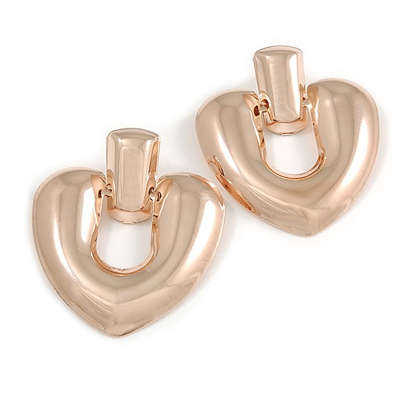 Large Polished Rose Gold Tone Heart Drop Earrings - 60mm Long