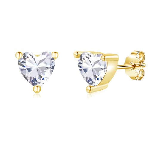 Loutade 925 Sterling Silver Stud Earrings for Women, Hypoallergenic 4mm Tiny Gold Heart Stud Earrings White Cubic Zircon, Dainty Small CZ Heart Cartilage Sleeper Stacks Ear Studs Gold Jewelry Gifts