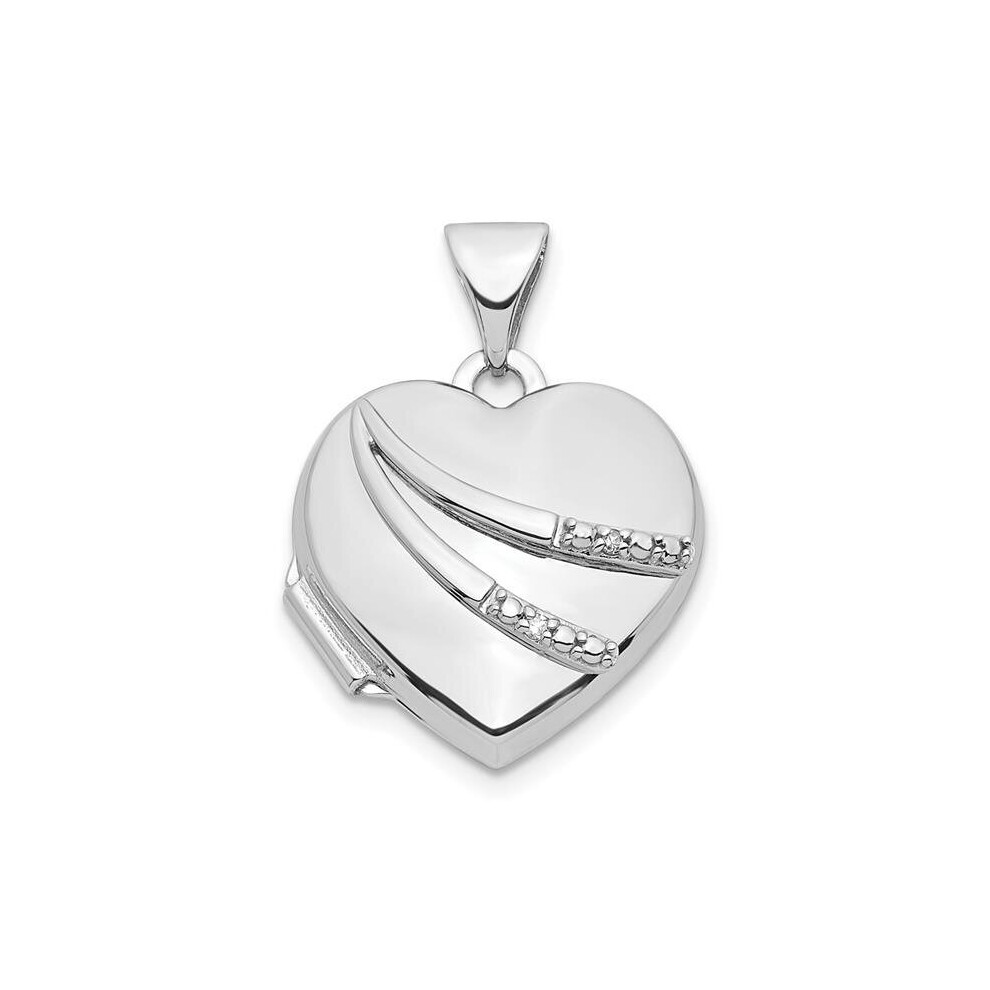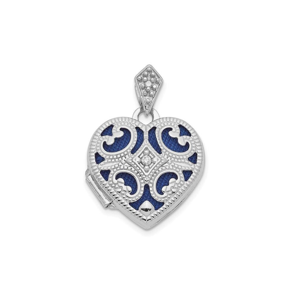 Finest Gold Sterling Silver Rhodium-Plated Diamond 18 Dangle 15 mm Heart Locket Pendant