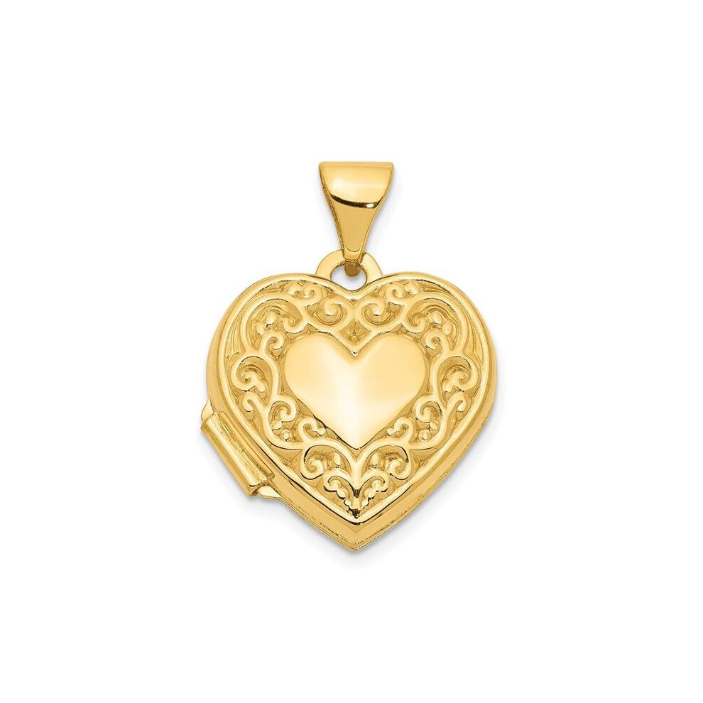 14K Yellow Gold Scroll Heart Locket Pendant