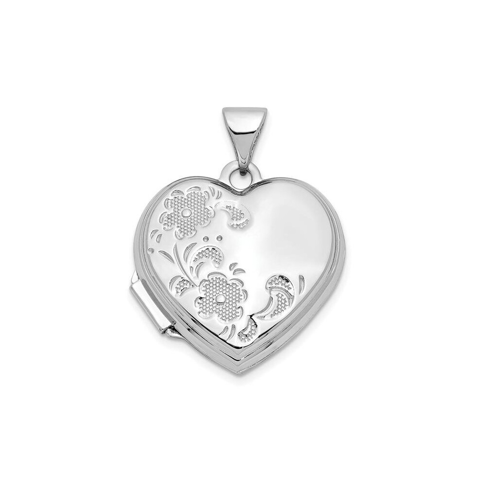14K White Gold Polished Textured Floral Heart Locket Pendant