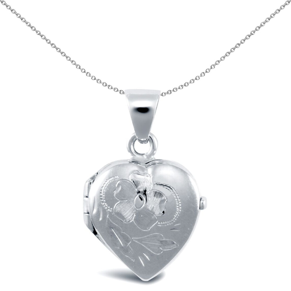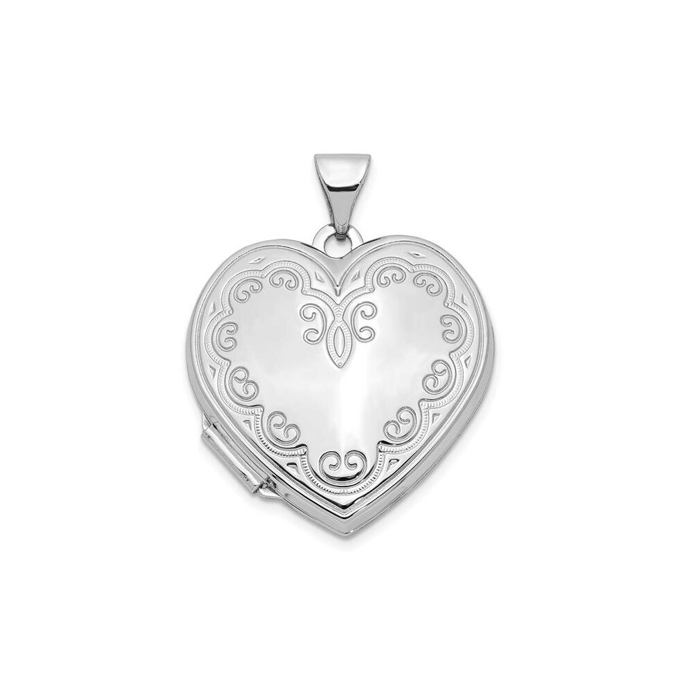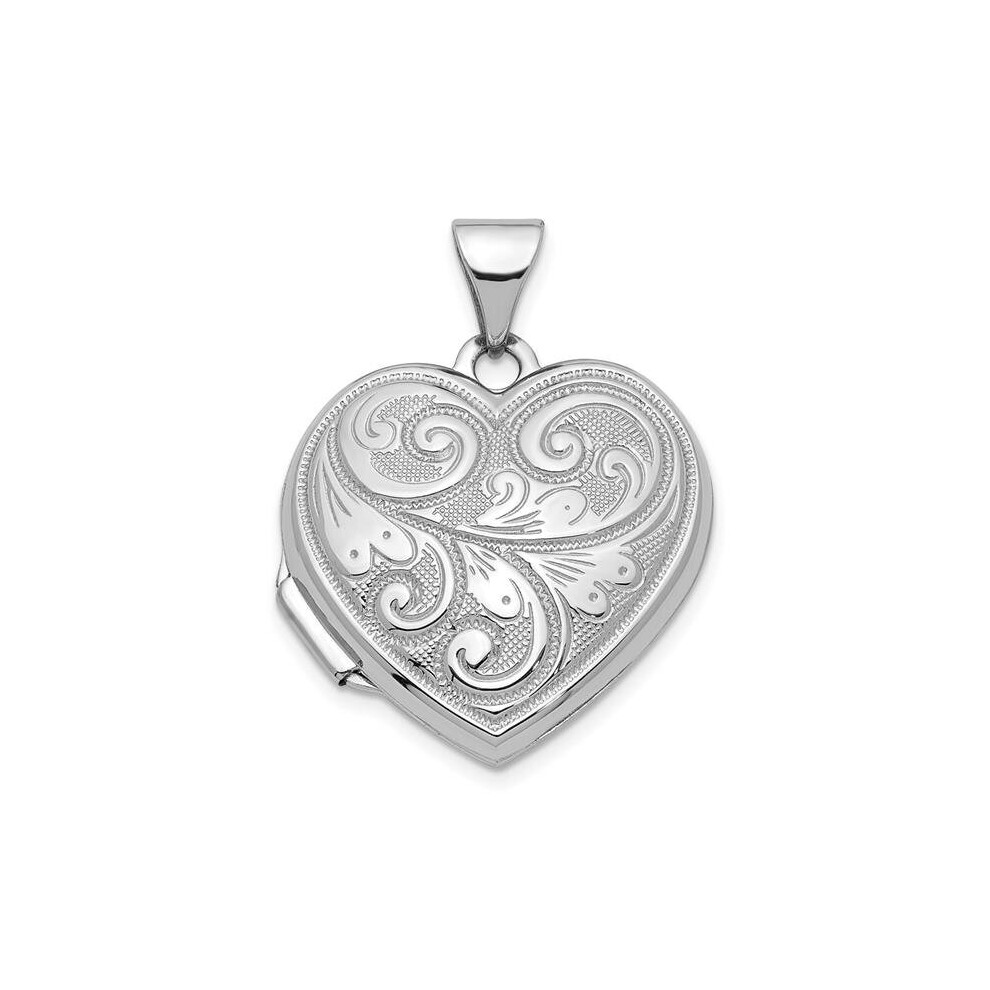 Jewelco London Ladies 9ct White Gold Engraved Love Heart Locket Pendant - JLC106