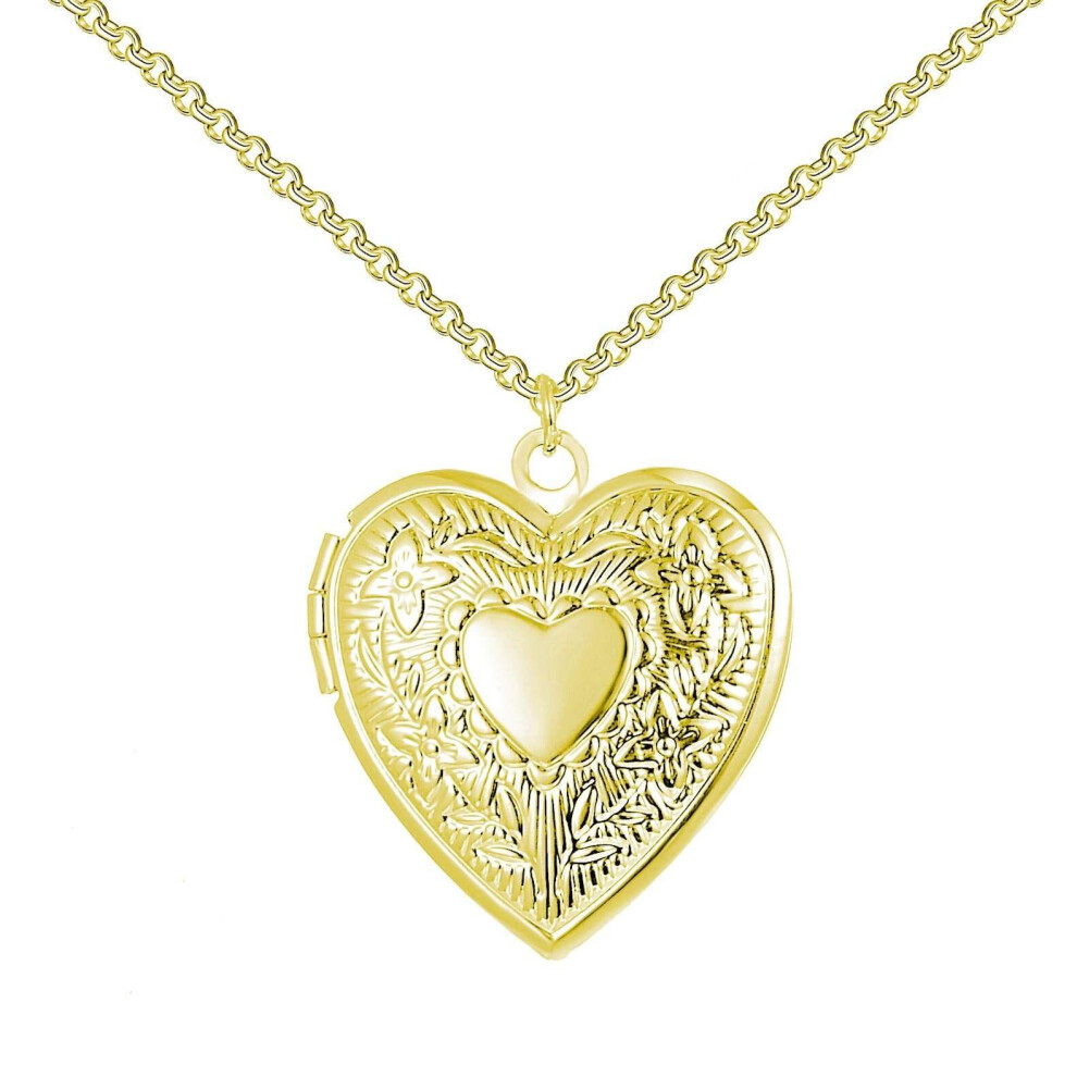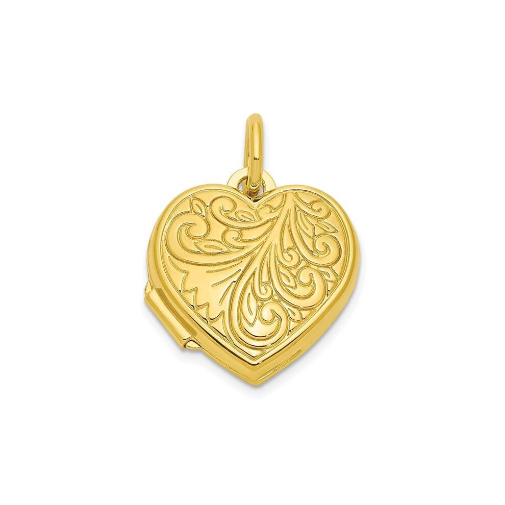 Jewelco London Ladies 9ct Yellow Gold Flower Pattern Love Heart Locket Pendant - 14mm - LKNR02202