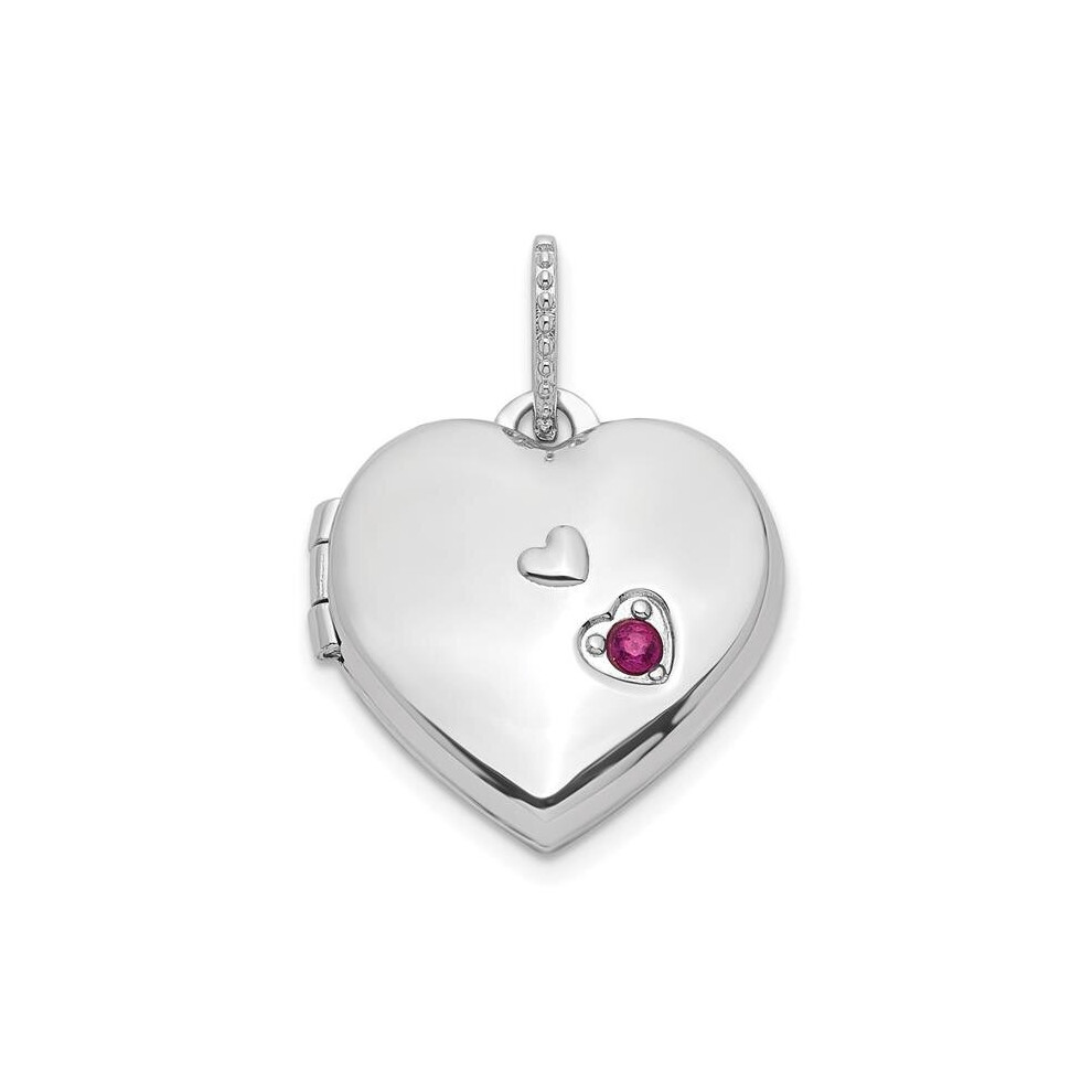 Finest Gold Sterling Silver Rhodium-Plated Lab Created Ruby 15 mm Heart Locket