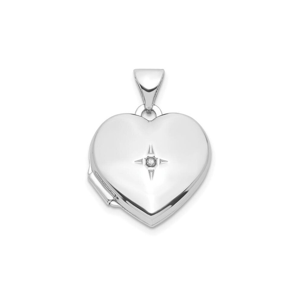 Finest Gold Sterling Silver Rhodium-Plated Diamond 21 Dangle 15 mm Heart Locket Pendant