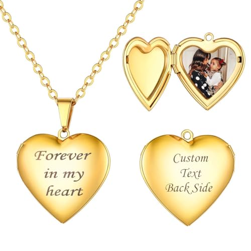 U7 Locket Necklace for Women Gold Plated Heart Pendant with Forever in my heart Personalized Photo Memorial Necklaces Elegant Jewellery Gifts for Her