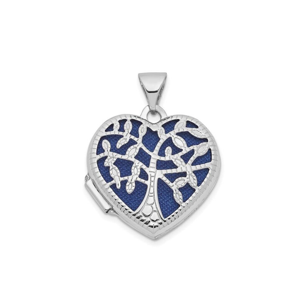 14K White Gold 18 mm Tree Heart Locket Pendant