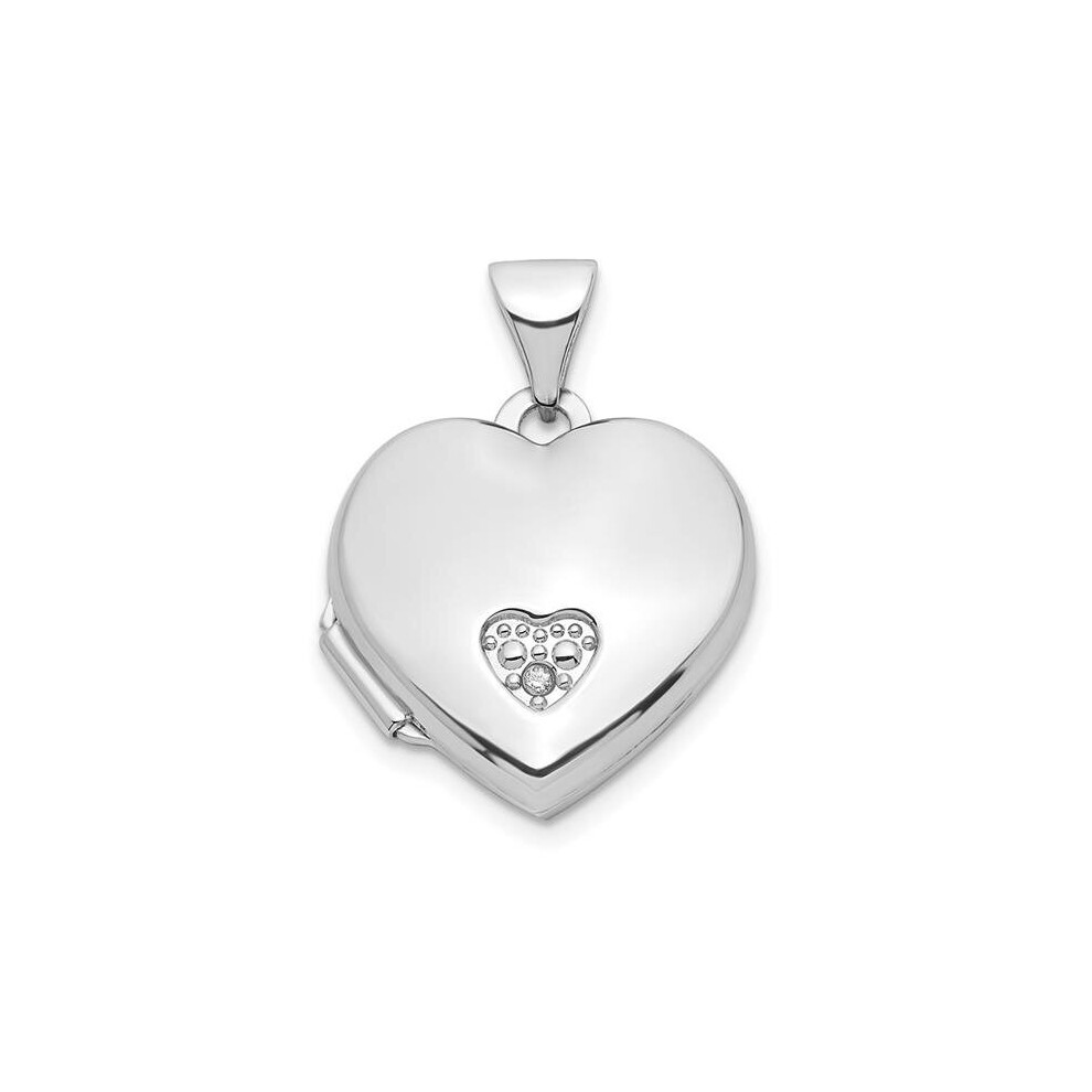 Finest Gold 14K Yellow & Rhodium with White 0.01CT Diamond 15 mm Heart Locket