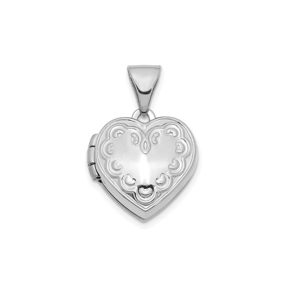 14K White Gold Textured 13 mm Heart Locket Pendant