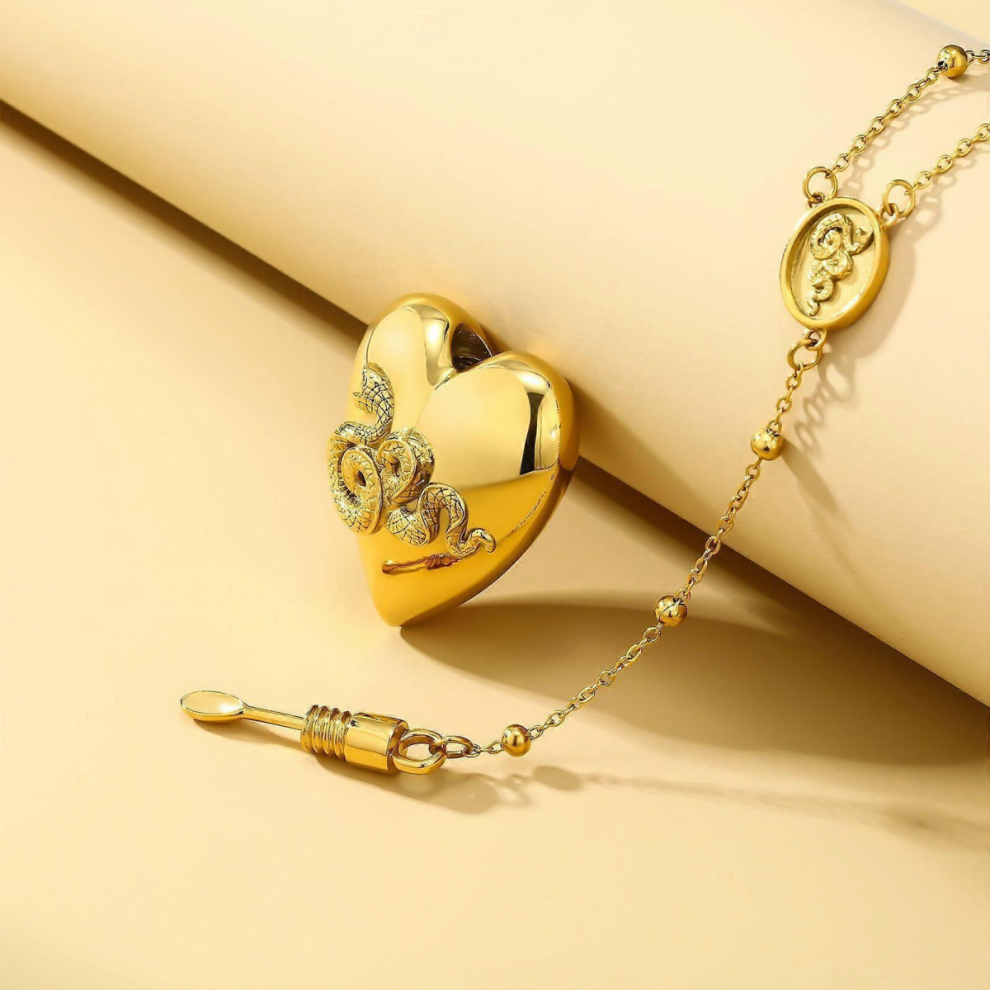 (Gold)LDR Heart Locket Necklace Opening Urn Pendant Neck Chain Jewelry for Women Girls
