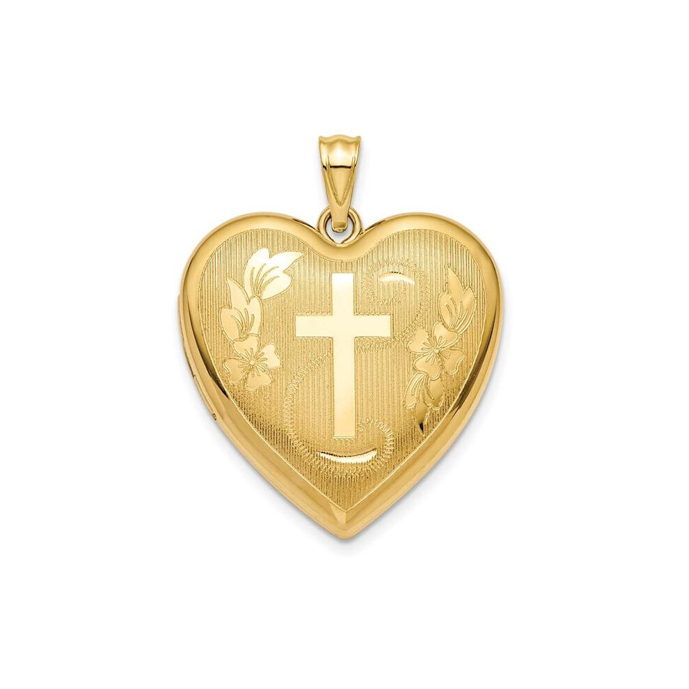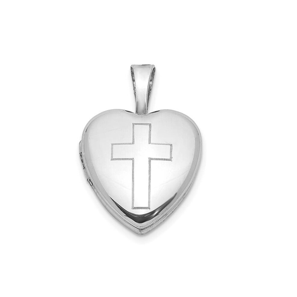 Finest Gold Sterling Silver Rhodium-Plated Polished Cross 12 mm Heart Locket